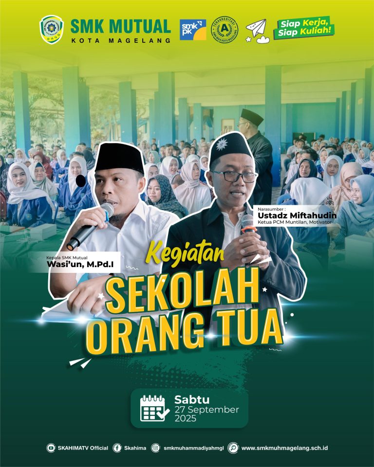 Dalam rangka mempersiapkan siswa kelas XII menghadapi Ujian Kompetensi Keahlian (UKK), SMK Muhammadiyah 1 Alternatif Kota Magelang menyelenggarakan kegiatan Sosialisasi Orang Tua/Wali Siswa. Kegiatan ini menjadi langkah penting untuk menyamakan pemahaman antara sekolah dan orang tua terkait kesiapan siswa, baik secara akademik, mental, maupun teknis pelaksanaan UKK. Sosialisasi diikuti oleh orang tua/wali siswa kelas XII…