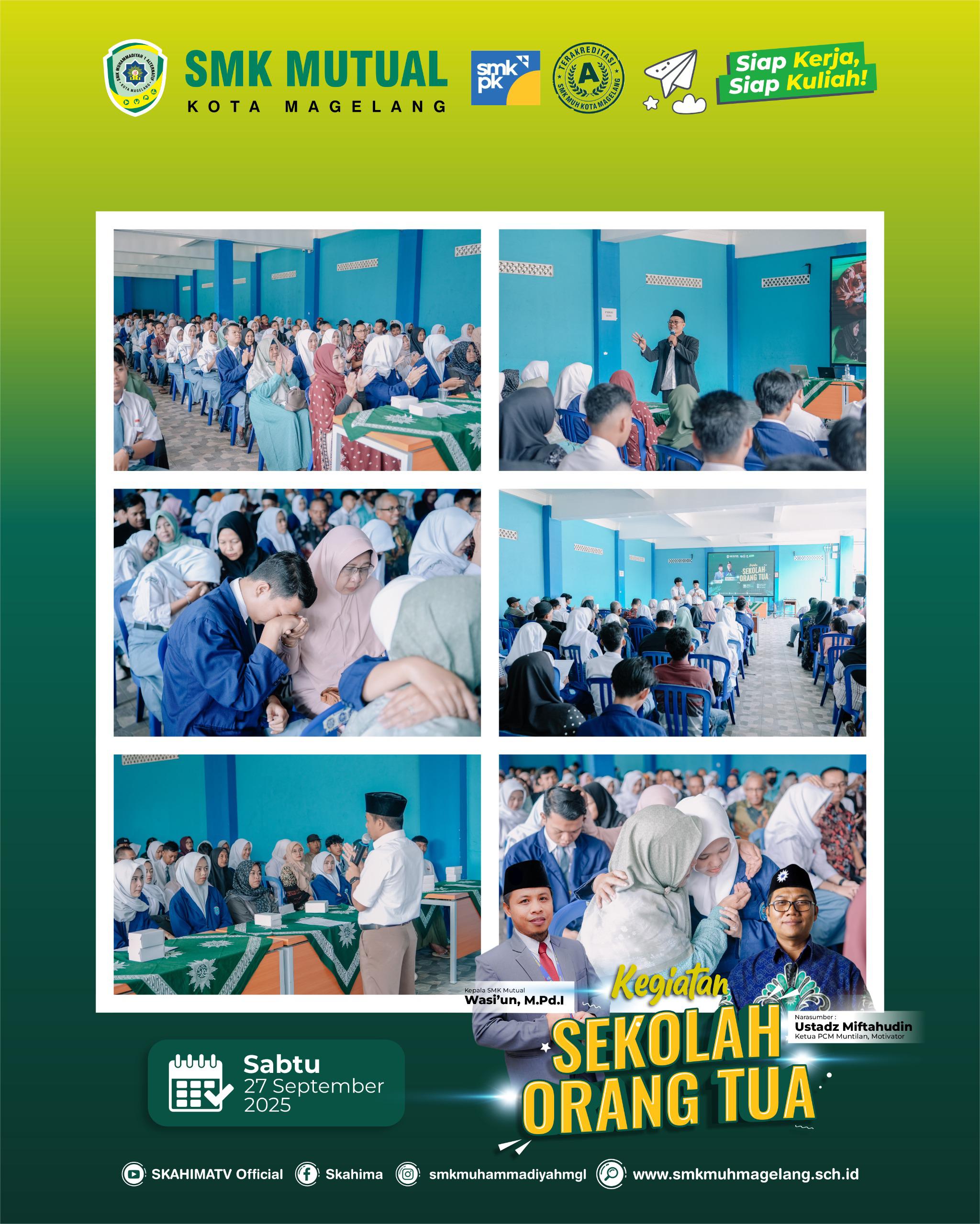 Dengan adanya kegiatan Sekolah Orang Tua, SMK Mutual berkomitmen untuk terus memperkuat sinergi dengan wali murid. Semoga ilmu dan inspirasi yang diperoleh menjadi bekal bersama dalam mencetak generasi yang tidak hanya berprestasi, tetapi juga memiliki akhlak mulia serta siap menghadapi tantangan masa depan. ✨