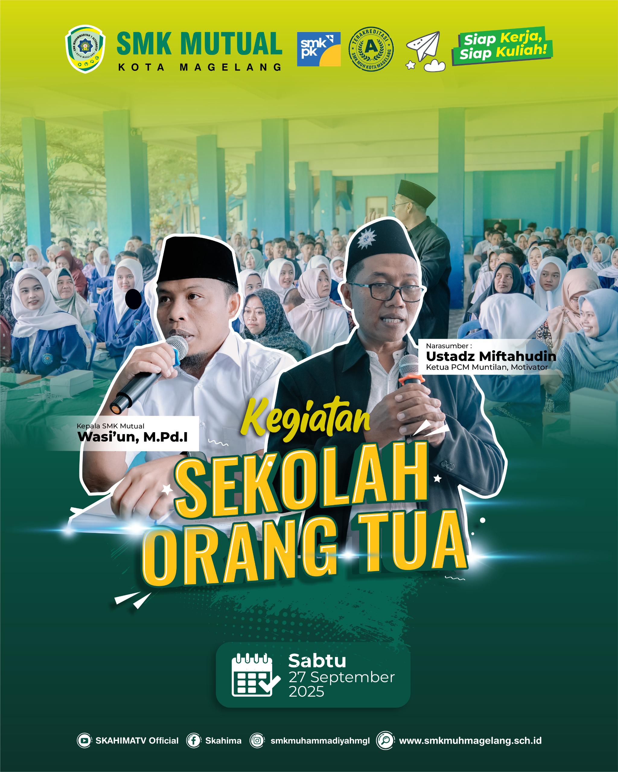 Dengan adanya kegiatan Sekolah Orang Tua, SMK Mutual berkomitmen untuk terus memperkuat sinergi dengan wali murid. Semoga ilmu dan inspirasi yang diperoleh menjadi bekal bersama dalam mencetak generasi yang tidak hanya berprestasi, tetapi juga memiliki akhlak mulia serta siap menghadapi tantangan masa depan. ✨